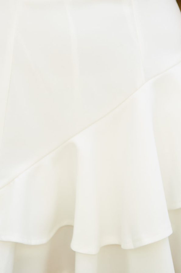Want to look super cute AND get all the love on the ‘gram? Our Moon Over Her Shoulder Dress features a strapless neckline, invisible back zipper, ruffle hemline and boy shorts underneath.